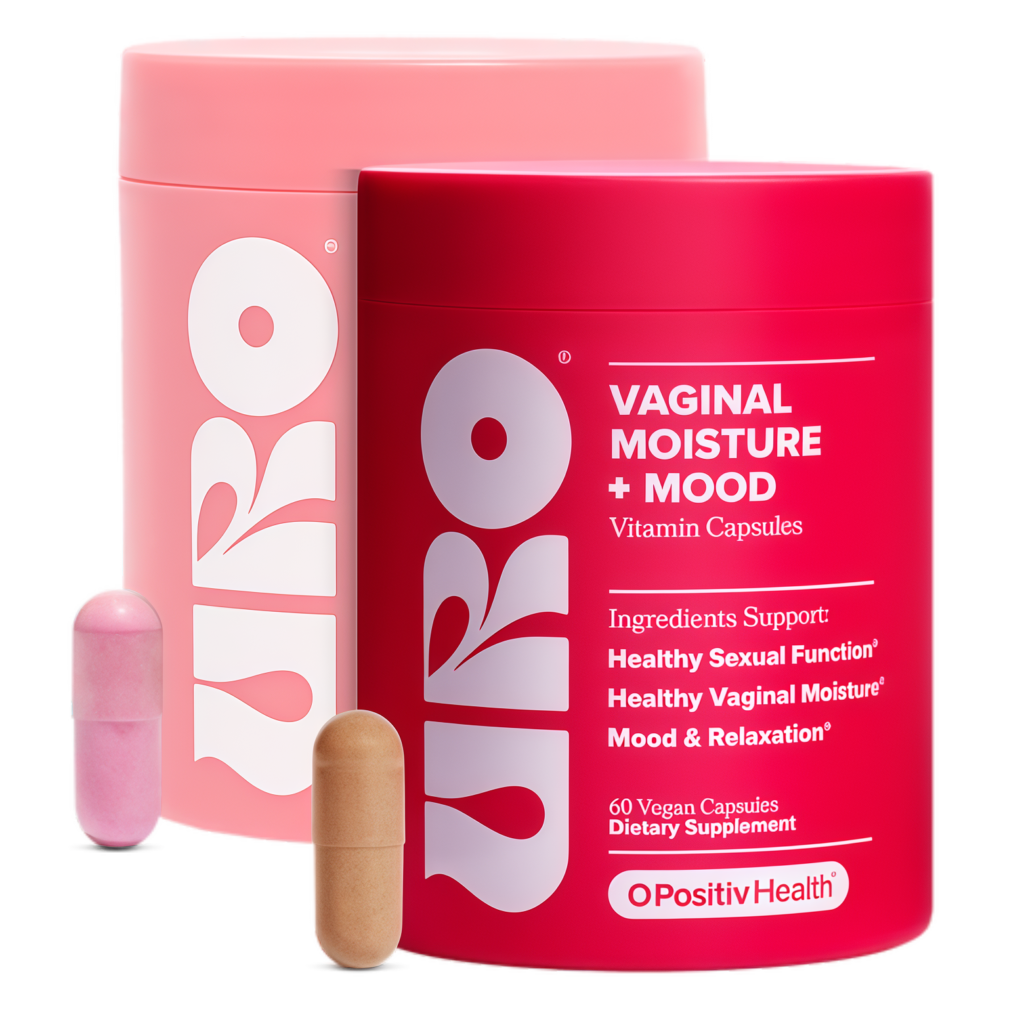 URO Vaginal Moisture & Mood Capsules blend KSM-66® Ashwagandha, Ginkgo Biloba, L-arginine, and GABA to support healthy blood flow, mood, and sexual function—helping you feel more relaxed, aroused, and ready to let go.